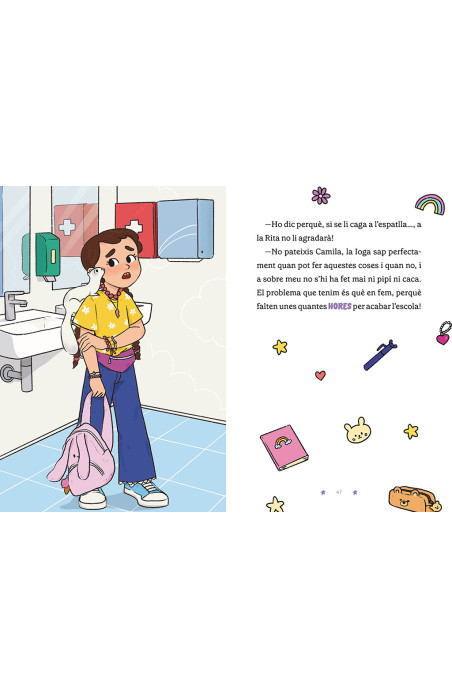 La Rita s’acaba de mudar i... potser la nova escola no està tan malament. Ja ha conegut els seus nous companys: la Beti Pirata, en Miquel i la Camil·la, però i si descobreixen que un floc de cabells se li torna de color lila quan es posa nerviosa? I si s’adonen del petit secret que avui l’ha acompanyat a l’escola? Ioga, ens hem ficat en un bon embolic!